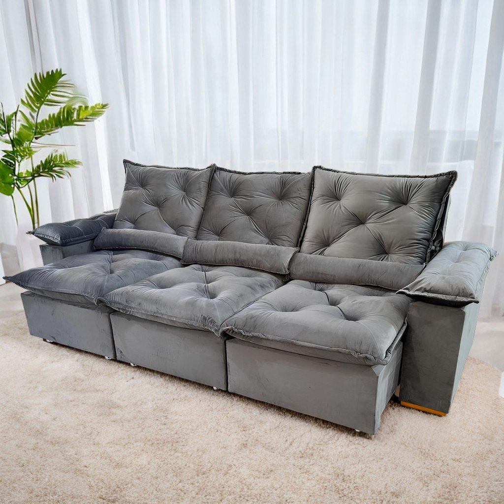 Sofá Retrátil e Reclinável 3 Módulos Grécia Cinza – QUINE ESTOFADOS