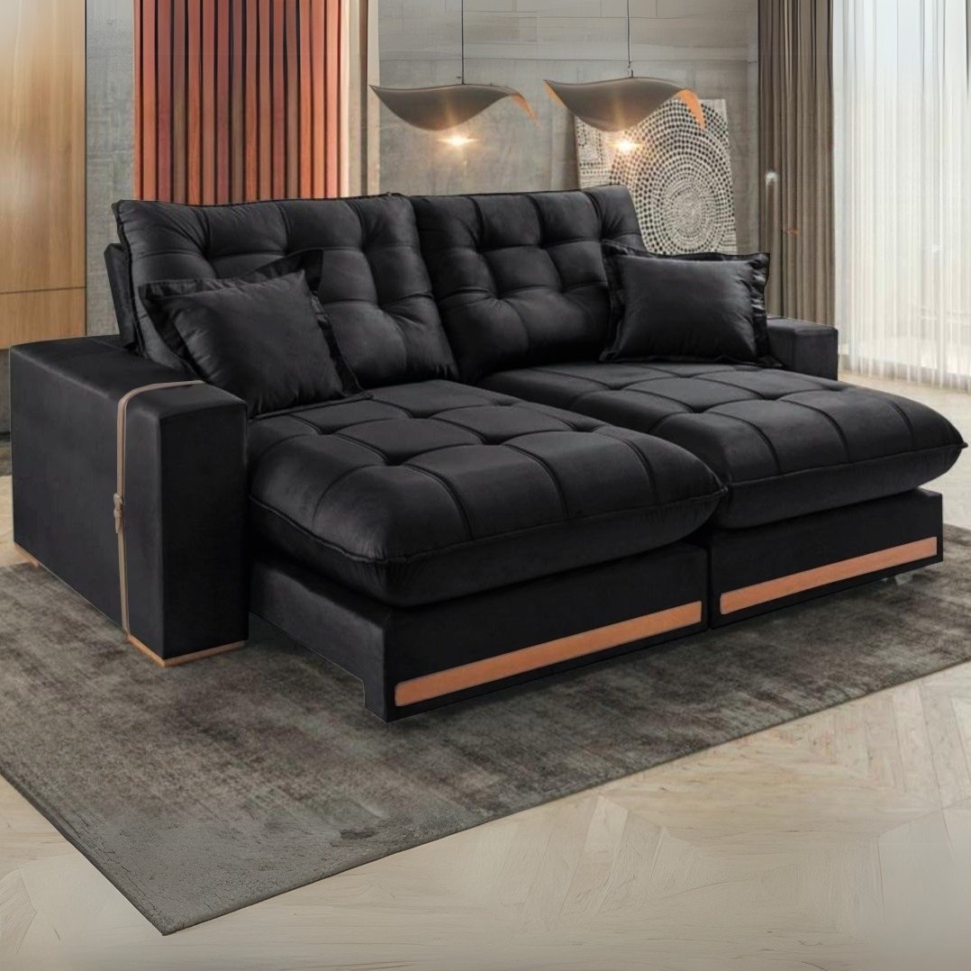 Sofá Retrátil e Reclinável Ártemis 017 2,50 m Veludo Preto – VICAM ESTOFADOS
