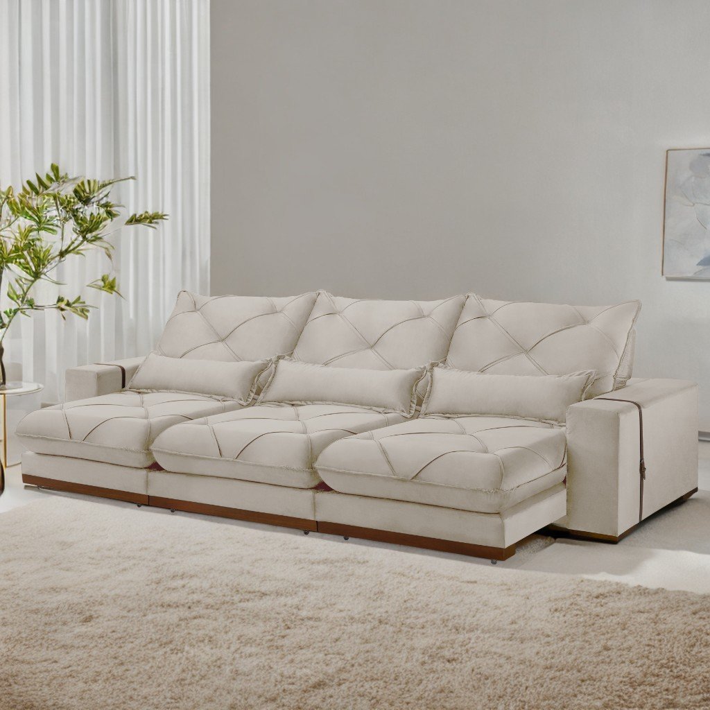 Sofá Retrátil e Reclinável Bahia 3,50 m Veludo Bege – A&D ESTOFADOS