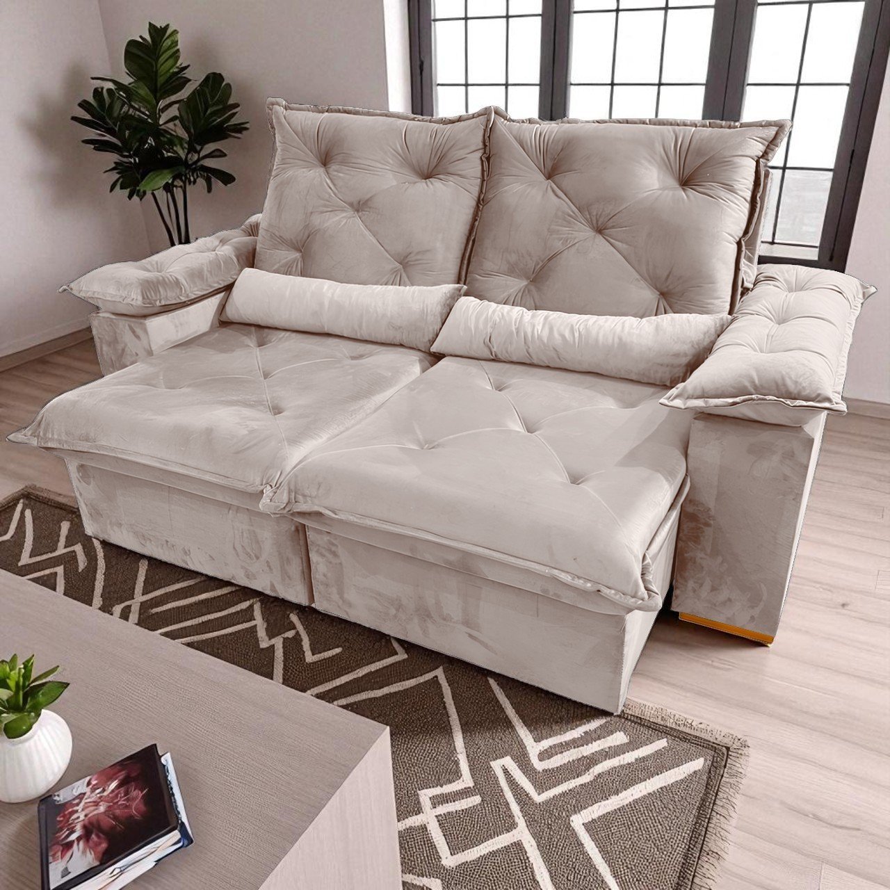 Sofá Retrátil e Reclinável Porto Madero 2,00 m Veludo Bege – IMPERIAL DECOR– Fabricante: Imperial Decor
