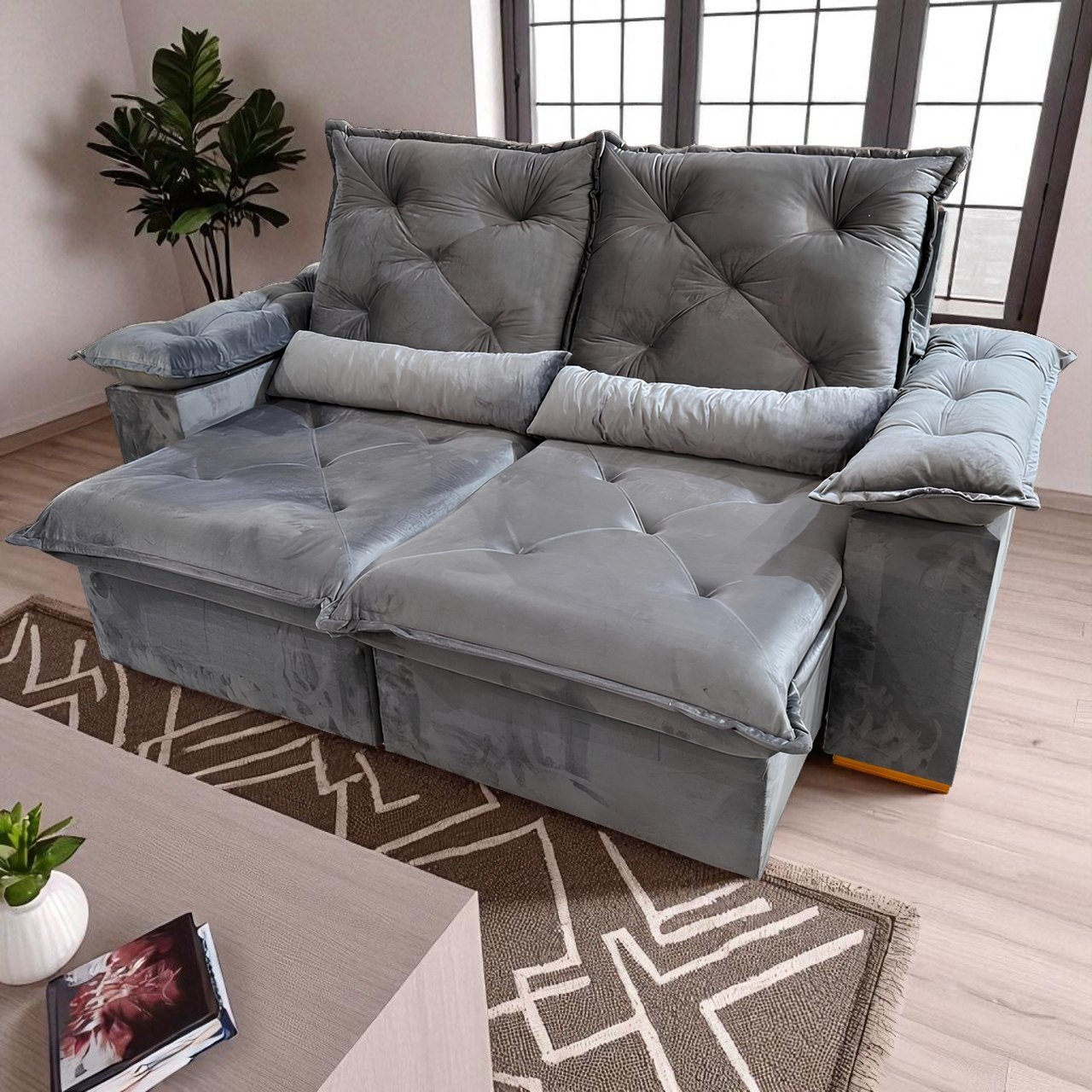 Sofá Retrátil e Reclinável Porto Madero 2,00 m Veludo Cinza Grafite – IMPERIAL DECOR– Fabricante: Imperial Decor